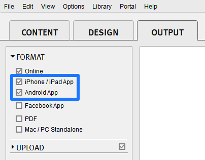 You can view your Flipbooks through mobile or tablet browsers and through our unbranded Flipbook Viewer app. You can enable or disable a small View in App? banner in your Flipbooks by simply checking iPhone / iPad App and Android App as seen in the image below.