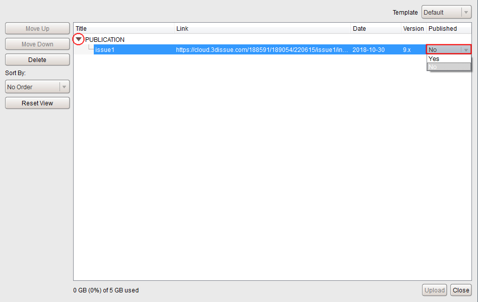 4. If it says No under the Published option, double-click on it and it will turn into a drop down menu.