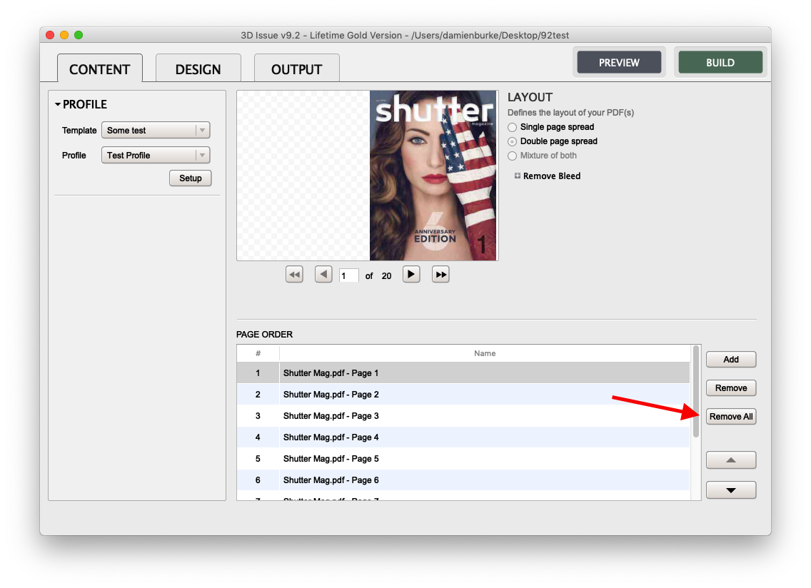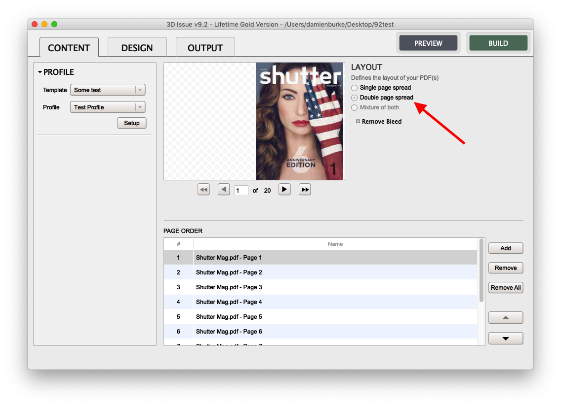 2. In the Content tab, Make note of the option selected under Layout (Single page, mixture of both or Double page spread)