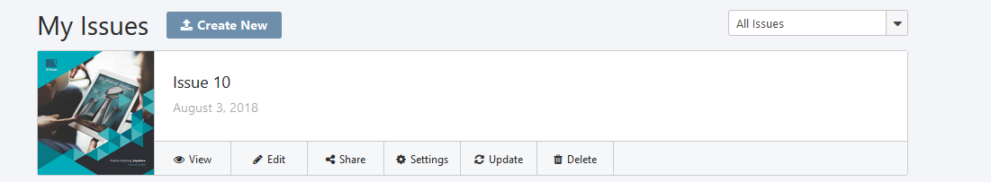 Once you have created at least a single Flipbook, the Dashboard will become accessible to you on subsequent visits. The dashboard displays a list of issues you’ve created and buttons under each issue for different purposes. Without further ado, let’s examine all of the available functions below.