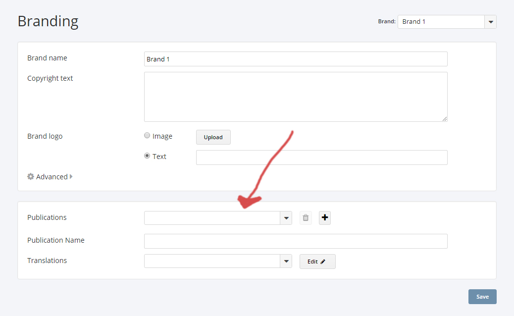 If the Publications, Publications Name and Translations fields are blank (below), please click on the + icon.