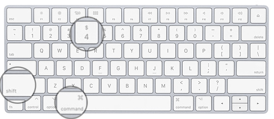 - On MacOS you can press Command + Shift + 4 on your keyboard to open the Screenshot tool.